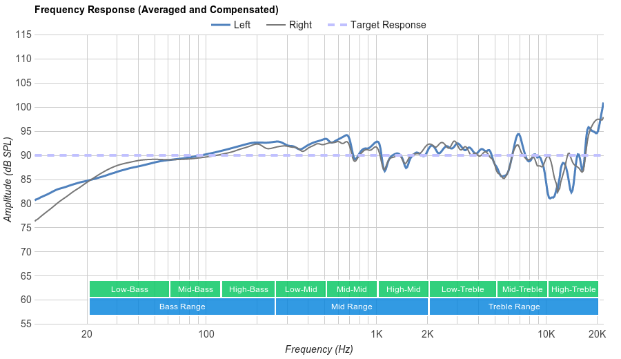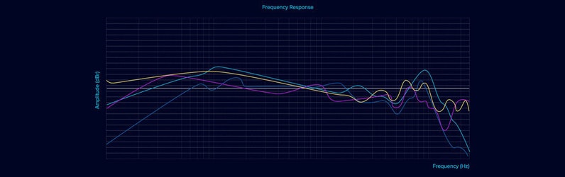 - معالجة الترددات Frequency Response: معالجة الترددات أو (فريكونسي ريسبونس) هي أحد التقنيات الصوتية التي تدرج أحيانًا في خانة المواصفات كصورة لشرح هذه التقنية. في نفس الوقت هي أكثر التقنيات الصوتية التي يصعب تحديدها من الصورة فقط ويجب إقران التجربة الفعلية معها. ولفهمها بشكل سريع اعلم أنه كلما امتد الخط الرسمي/البياني في الترددات المنخفضة-المتوسطة-العالية كلما كانت الأصوات أقل حدة وكلما انضغط أكثر كلما كانت الأصوات أكثر حدة. وتنقسم معالجة الترددات إلى 3 أقسام: