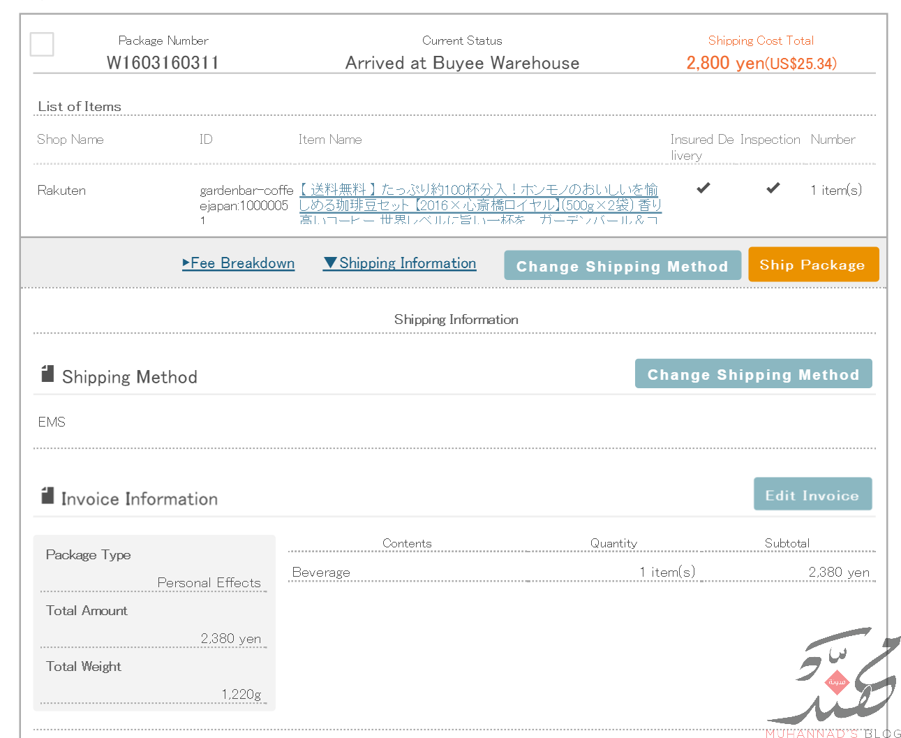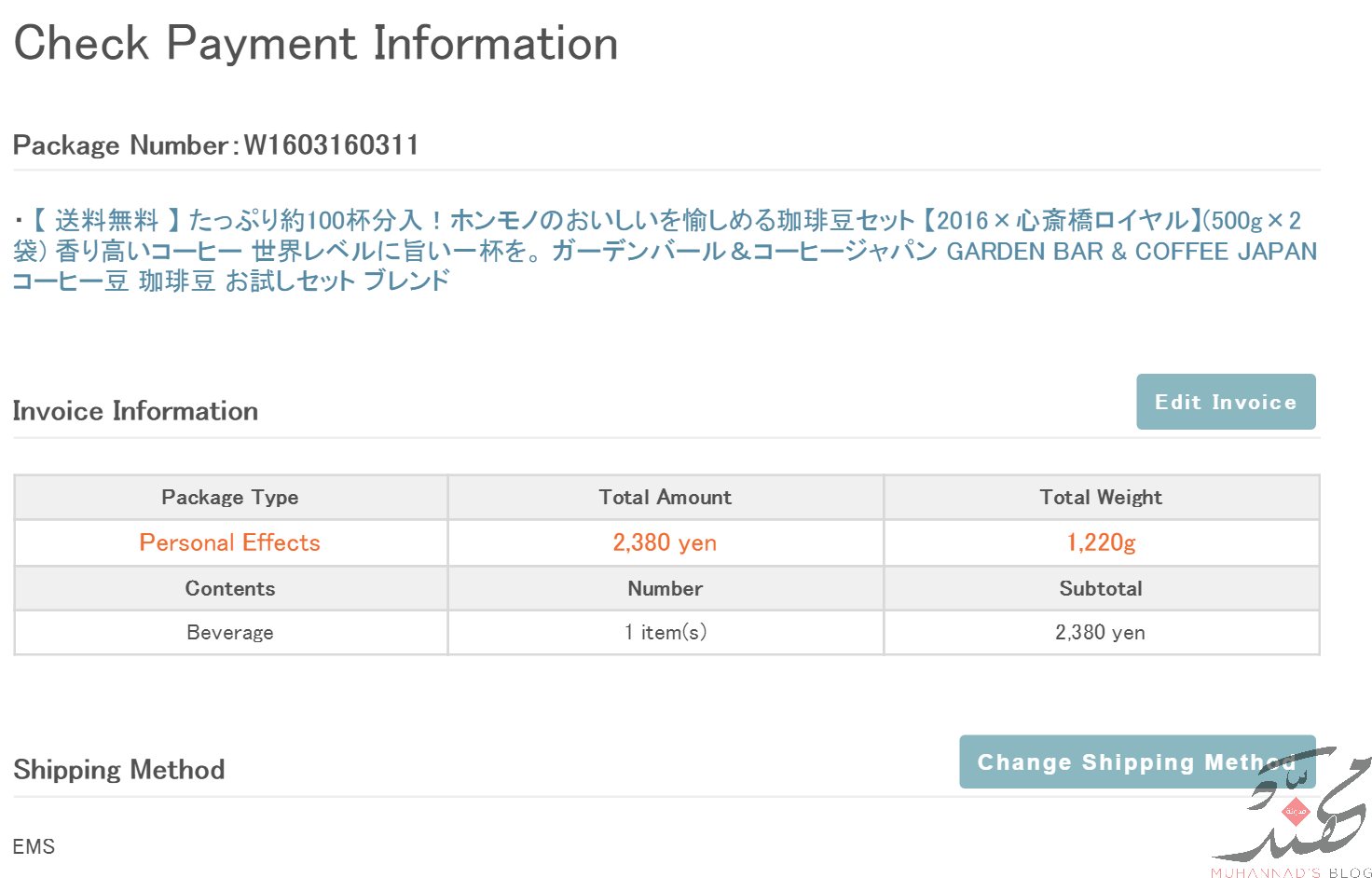 قمت بتجربة الموقع لشراء قهوة يابانية من محل Coffee Garden Bar بسعر JPY 2380 ين ياباني أي مايعادل 75 ريال سعودي. قيمة الشحن كانت 2800 JPY ين ياباني أي مايعادل 95 ريال سعودي لوزن 1220 جرام. هذه بعض المعلومات عن التجربة: