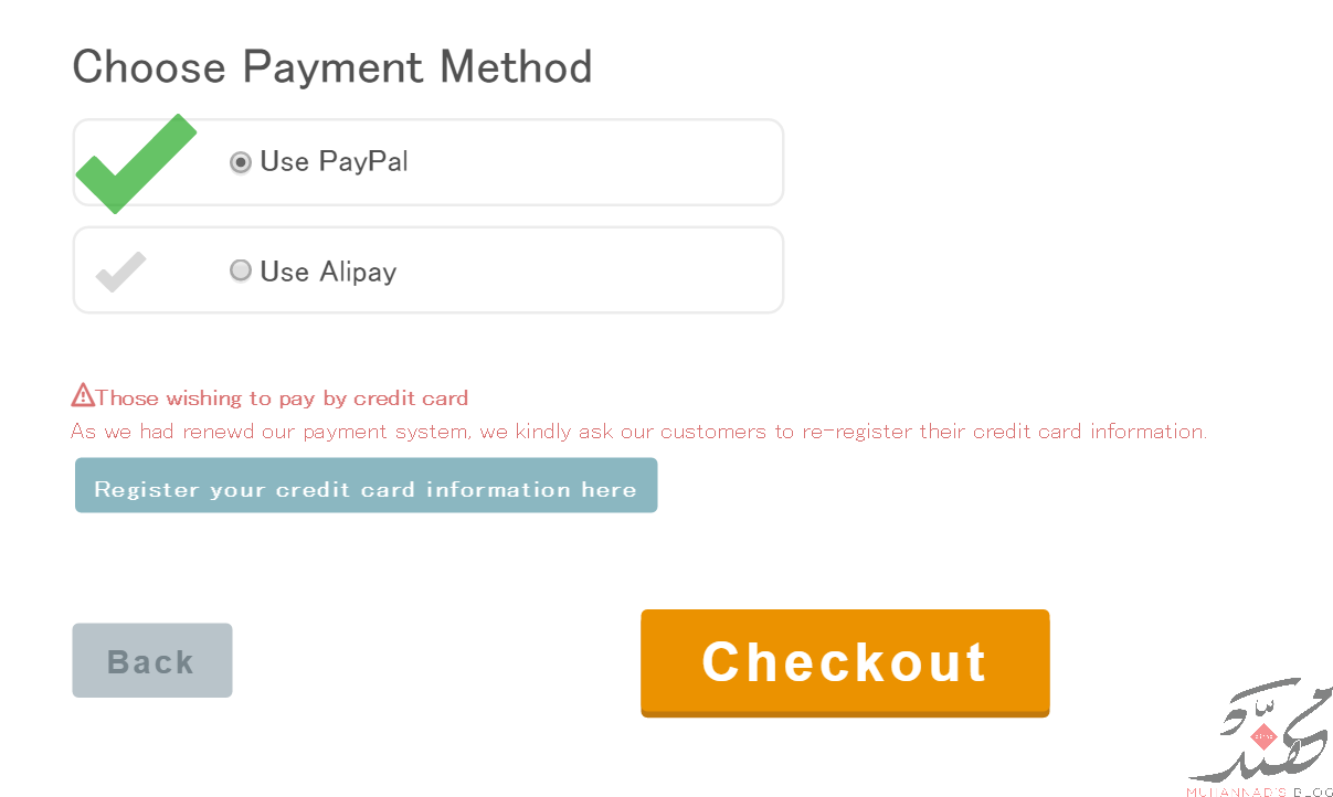 12- بعد الانتهاء قم باختيار طريقة الدفع والنقر على كلمة Checkout (صورة 14).