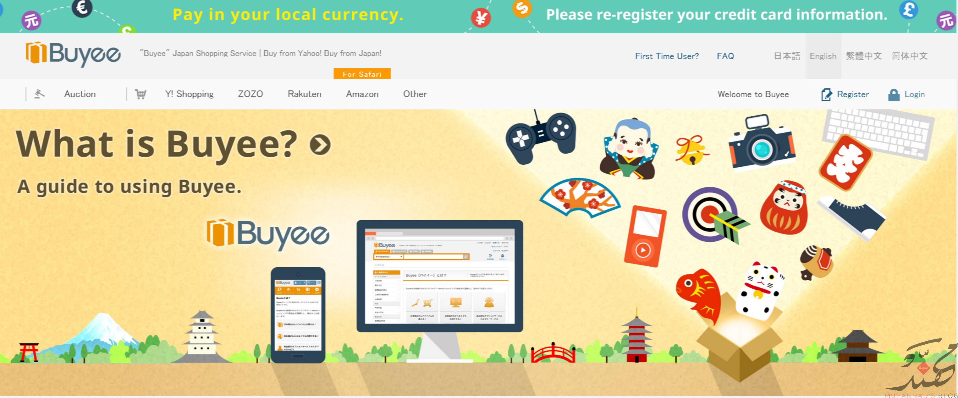 1- الذهاب لموقع Buyee الياباني باللغة الإنقليزية http://buyee.jp/?lang=en (صورة 1).