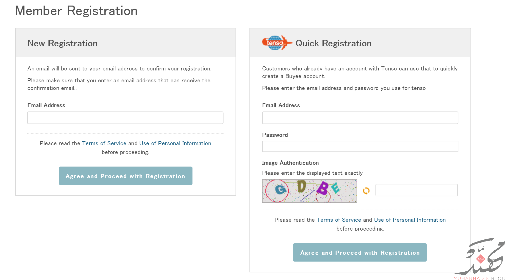 8- بعدها سوف تجد صفحة التسجيل وسوف يقوم موقع Buyee باعطائك الخيار بالتالي (صورة 8):
