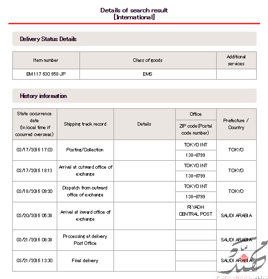 - قام موقع Buyee بشحن الطلب إلى السعودية يوم 17 مارس