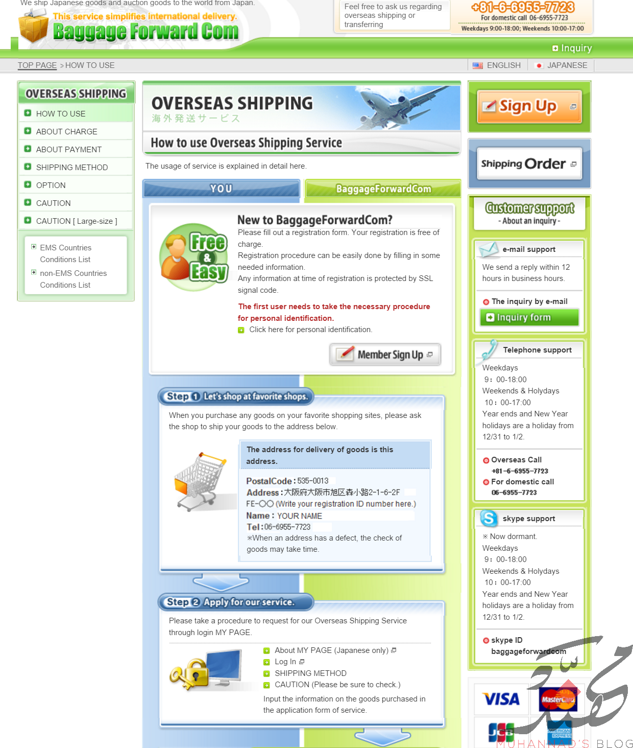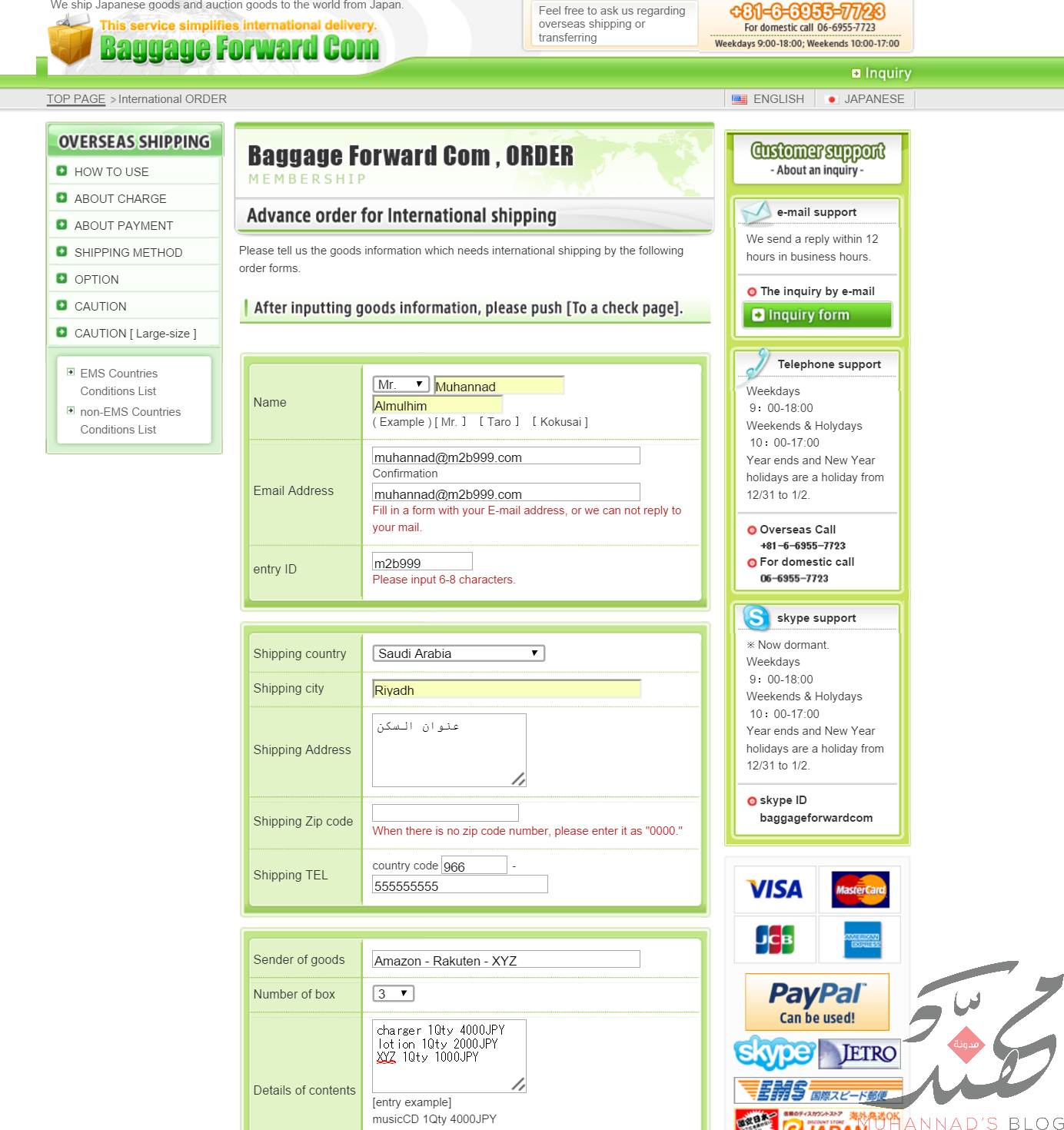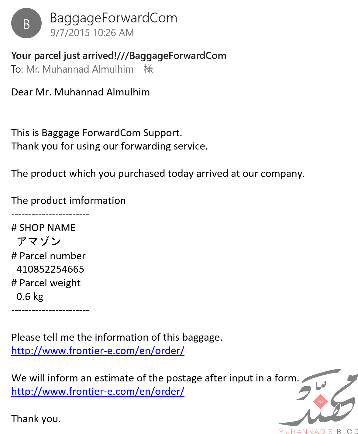 من ناحية التجربة الشخصية فقد طلبت قهوة Blendy اليابانية (هنا) وشاحن cheero (هنا) عن طريق موقع BaggageForward وكانت التجربة كالتالي: