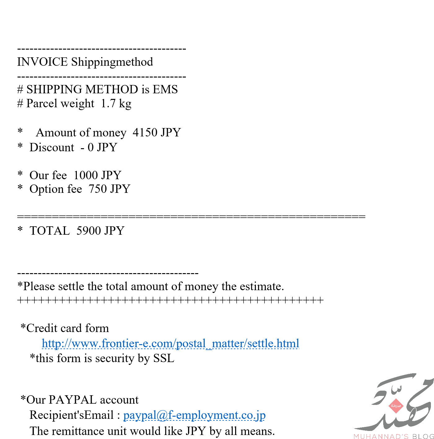- معلومات القطع في الخانة التالية كالتالي: نوع القطعة، العدد وذكر كلمة Qty بعدها (1Qty او 5Qty او بحسب العدد)، سعرها وذكر كلمة JPY بعدها (1000JPY او 3450JPY او بحسب السعر)