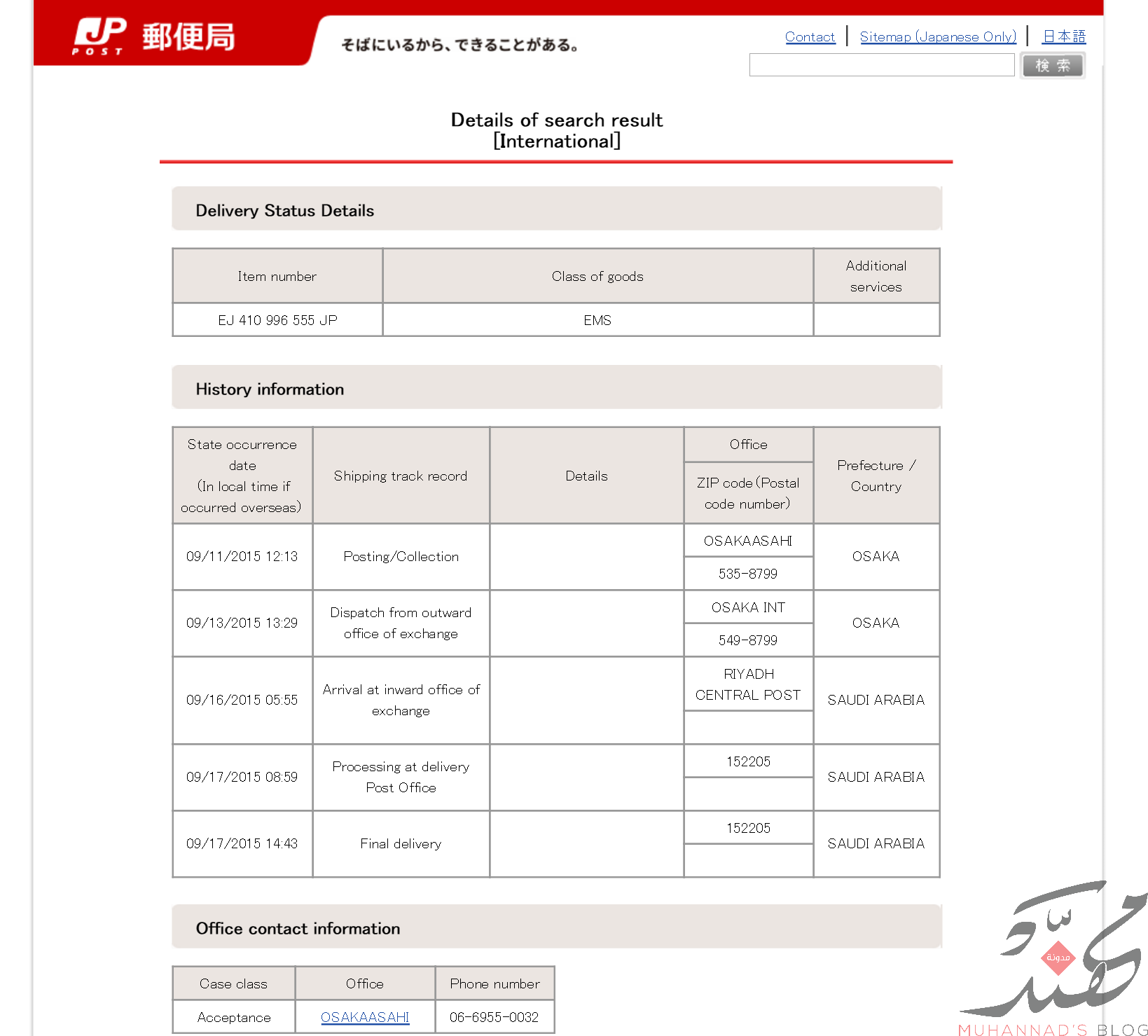 - المدة: تم الشحن من الشركة في اليابان يوم 11 سبتمبر وتم التوصيل للمنزل في الرياض يوم 17 سبتمبر