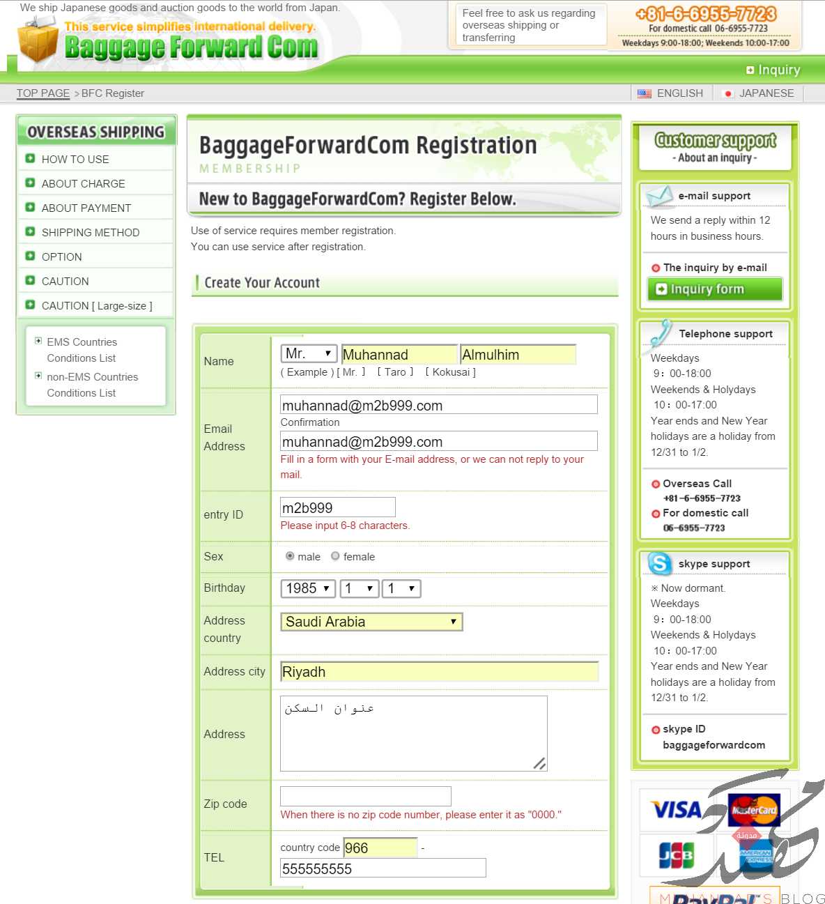 - معلومات عنوانك الشخصي والذي سوف تستخدمه حال الشراء من المواقع اليابانية (صورة 10).
